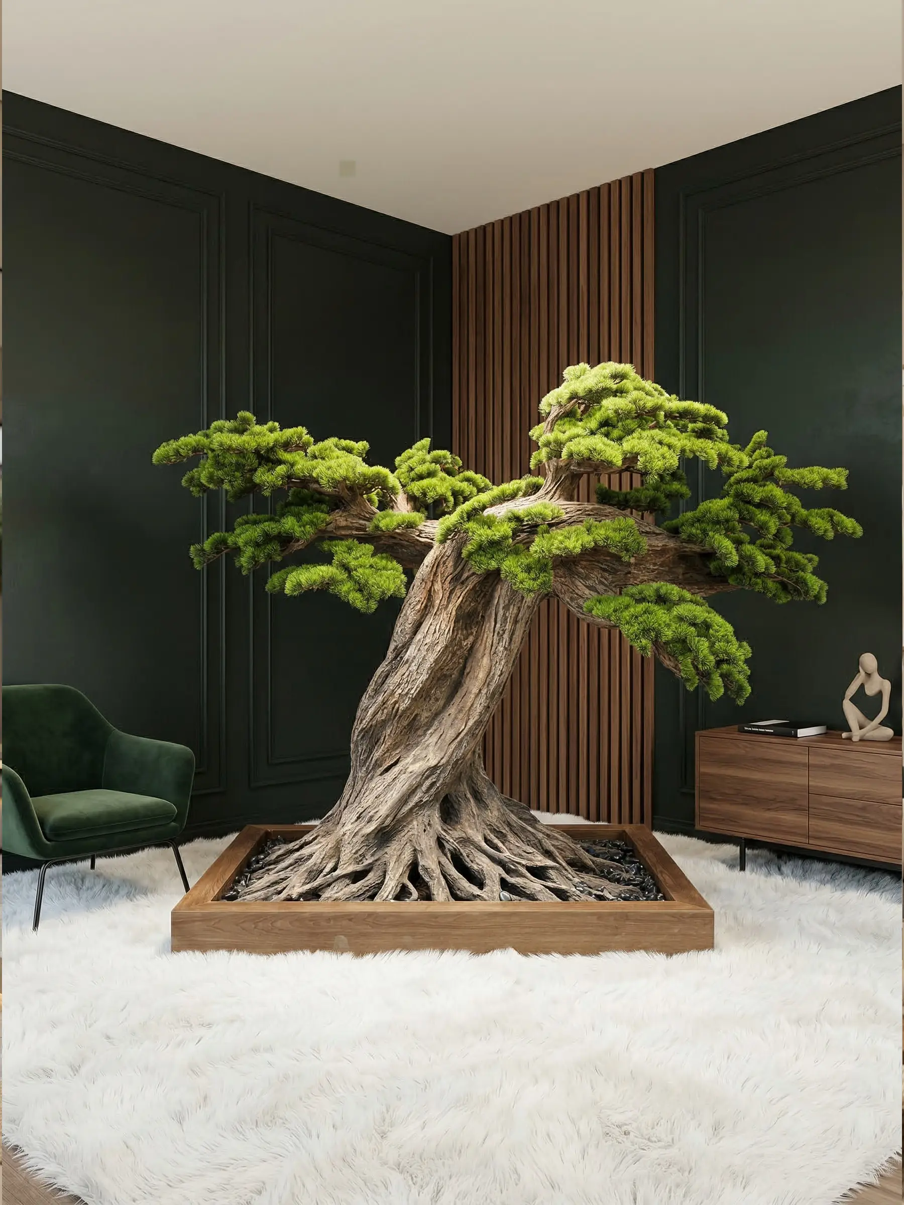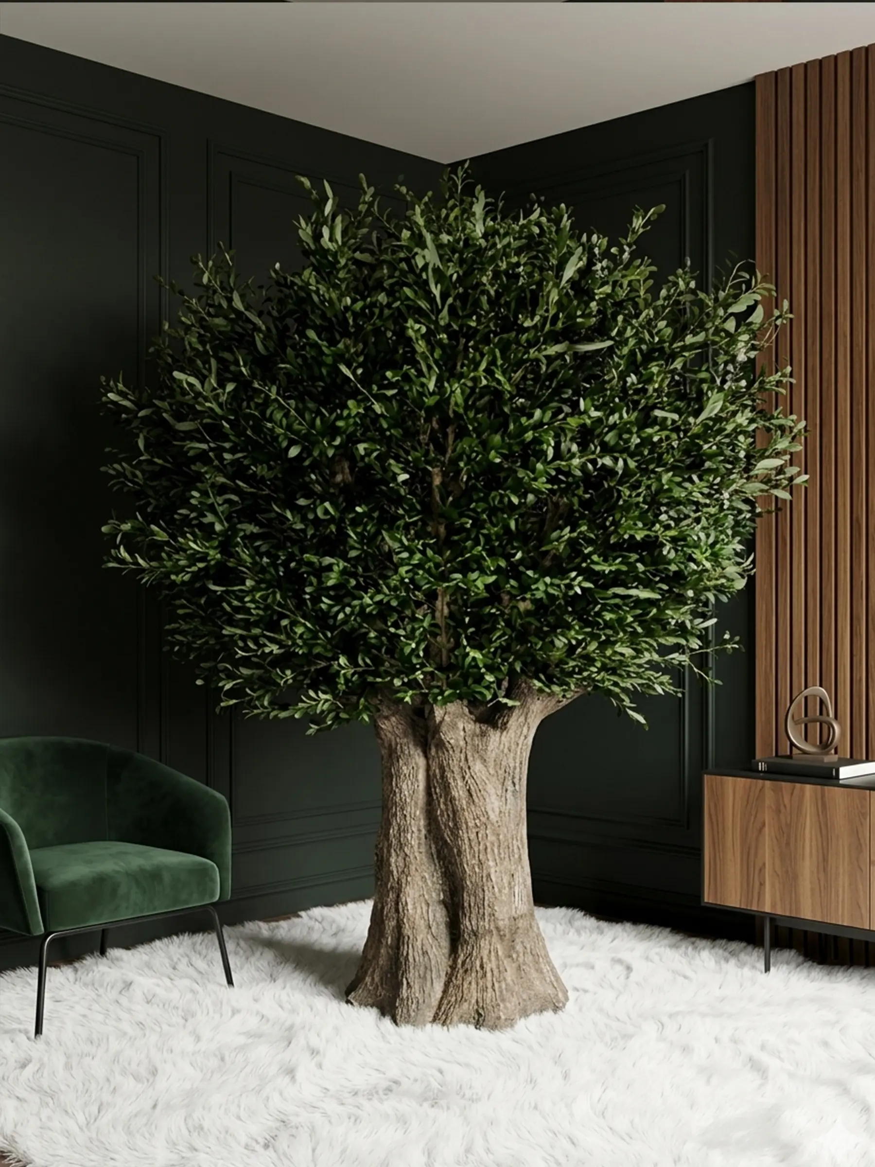 Standing 175 cm tall and 235 cm wide, it makes an ideal decorative statement for living rooms, offices, hotel lobbies, and reception areas. The natural-looking trunk and sculpted foliage provide a realistic appearance that blends perfectly with modern interiors.