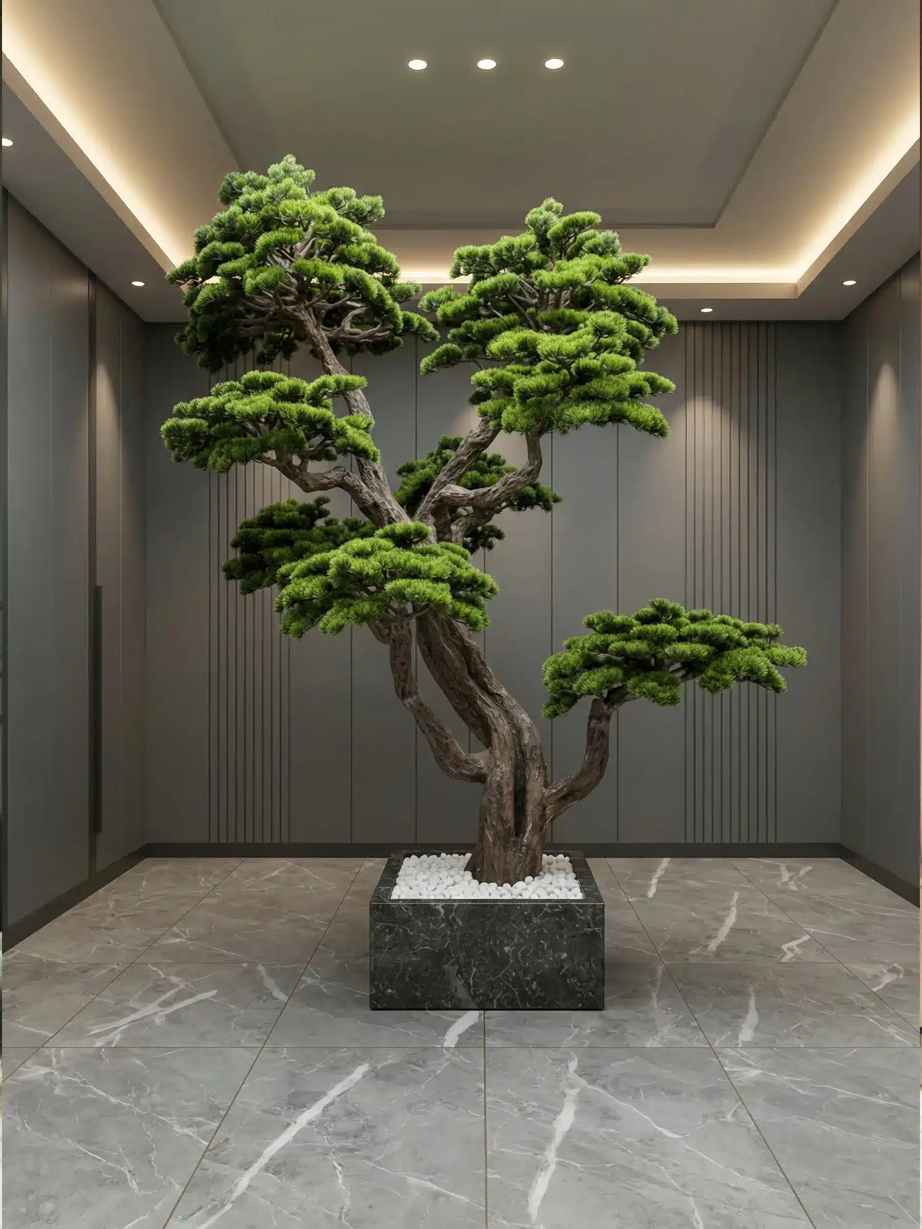 Designed with layered branches and vibrant green needles, this bonsai captures the elegant structure of traditional bonsai styling while requiring absolutely no maintenance.
